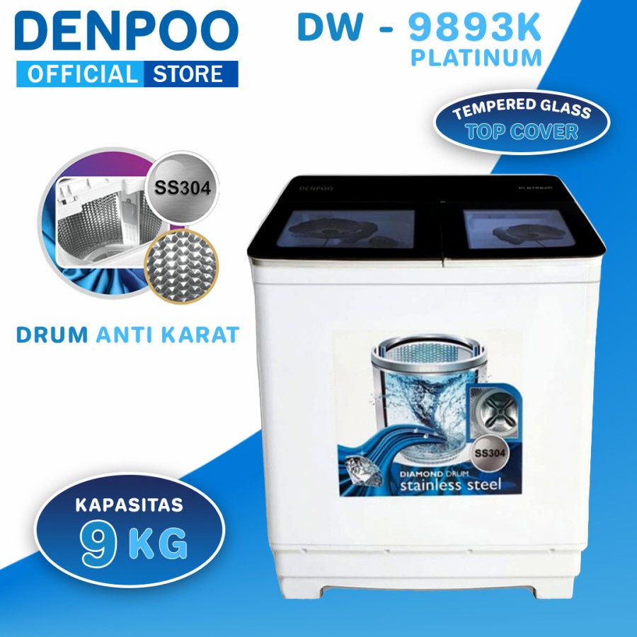 Denpoo Mesin Cuci Dw 9893k Twin Tub Diamond Drum Shopee Indonesia