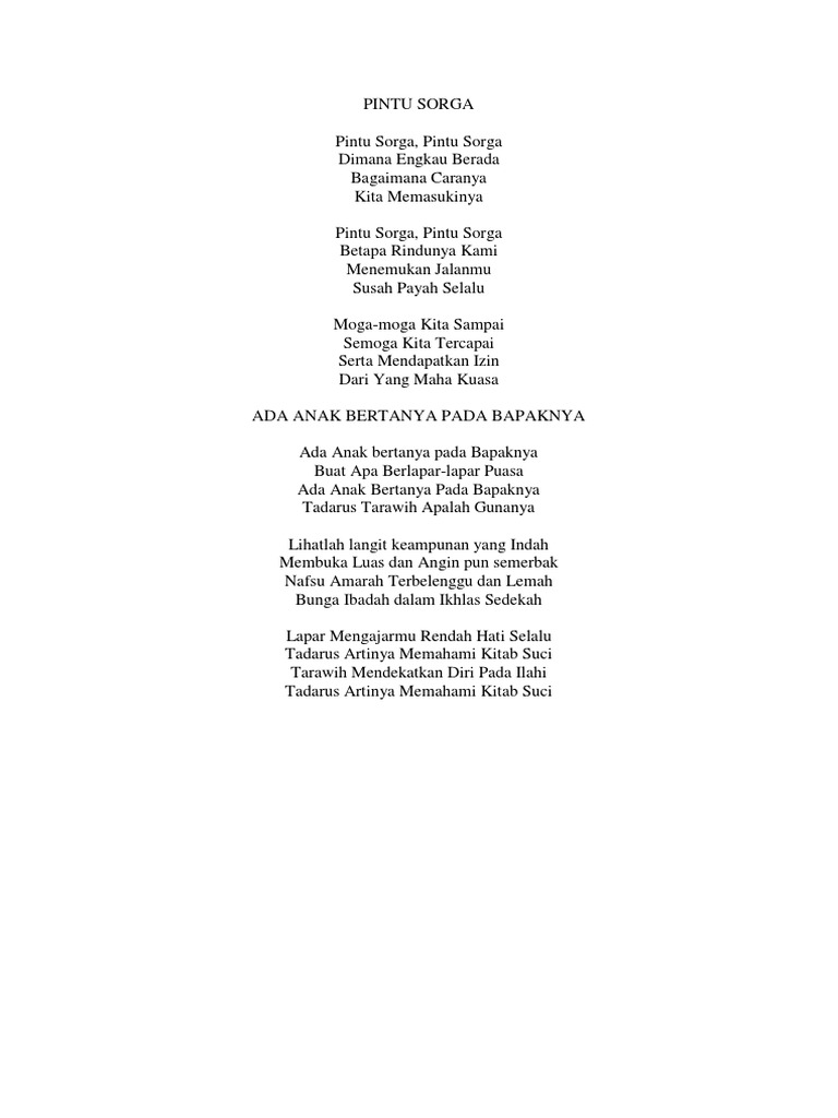 Nyanyi juga Doa. G Am G Am G Am G Am AmE. Lagu Qasidah Kota Santri Lirik Suasana di kota santri Asyik senangkan hati Suasana di kota santri Asyik senangkan hati Tiap pagi dan sore hari Muda-mudi berbusana rapi Menyandang kitab suci Hilir-mudik silih berganti Pulang-pergi mengaji Duhai ayah ibu Berikanlah izin daku Untuk menuntut ilmu Pergi ke rumah guru Mondok.