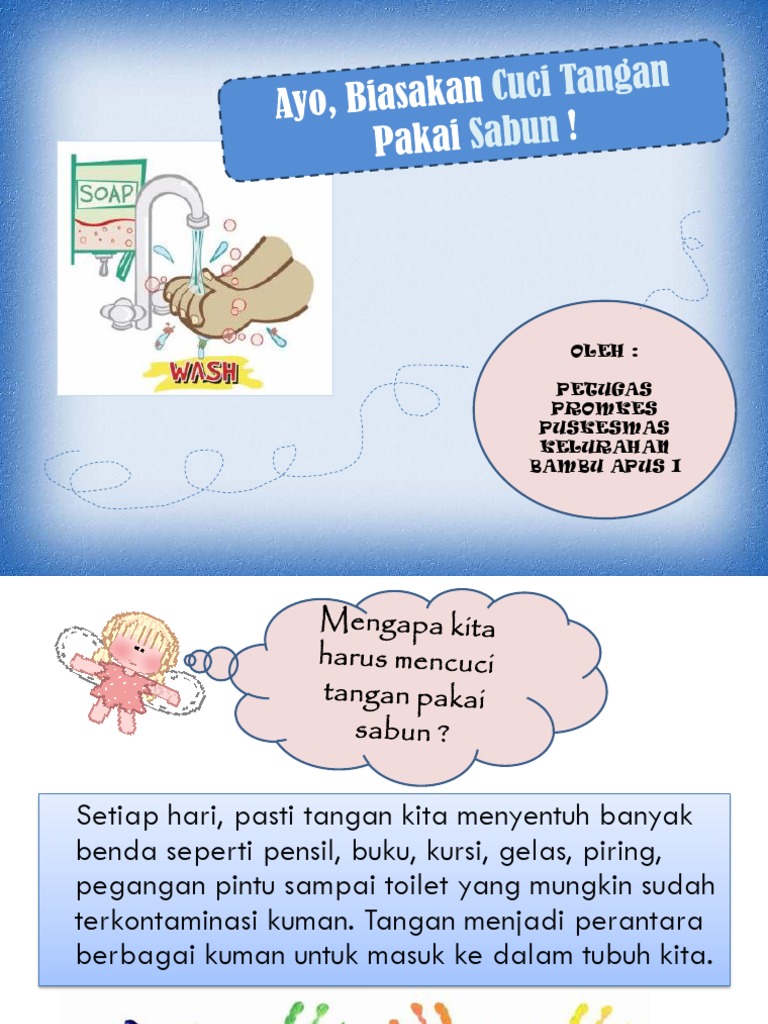 Di dunia sebanyak 6 juta anak. Penyampaian Materi Tentang Perilaku Hidup Bersih dan Sehat di SMPN 13 Jakarta Timur. Mencuci tangan adalah membasahi tangan dengan air mengalir untuk menghindari penyakit agar kuman yang menempel pada tangan benar-benar hilang.